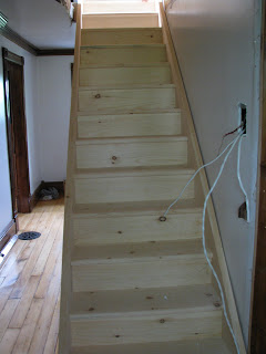 That is not enough varnish coats; I will add a couple more coats when we get the banister and spindles installed. We have to save up for those. We will be putting cardboard on the stairs to protect them while we are working on the attic.